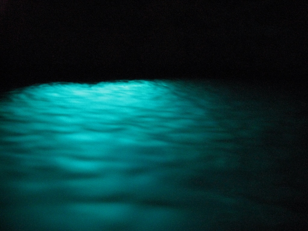 Heraf navnet på grotten. Lyset kommer ind fra under vandet