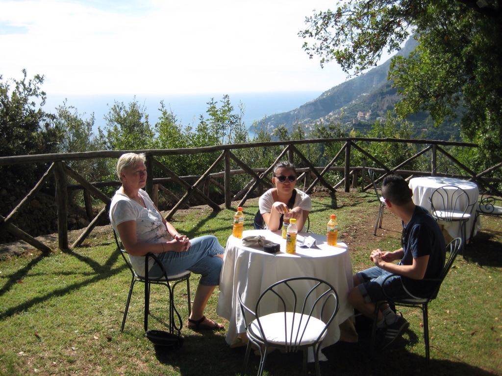 Tiltrængt forfriskning. Alt foregår op og ned af bjerget, man har ondt i knæ og haser