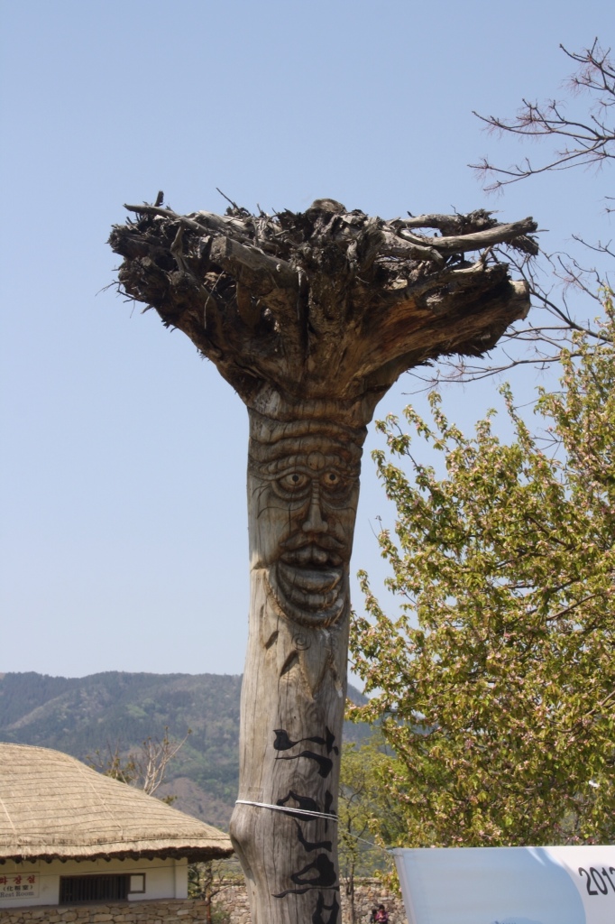 Rundt om landsbyens bymur står statuer, der skal skræmme fremmede.