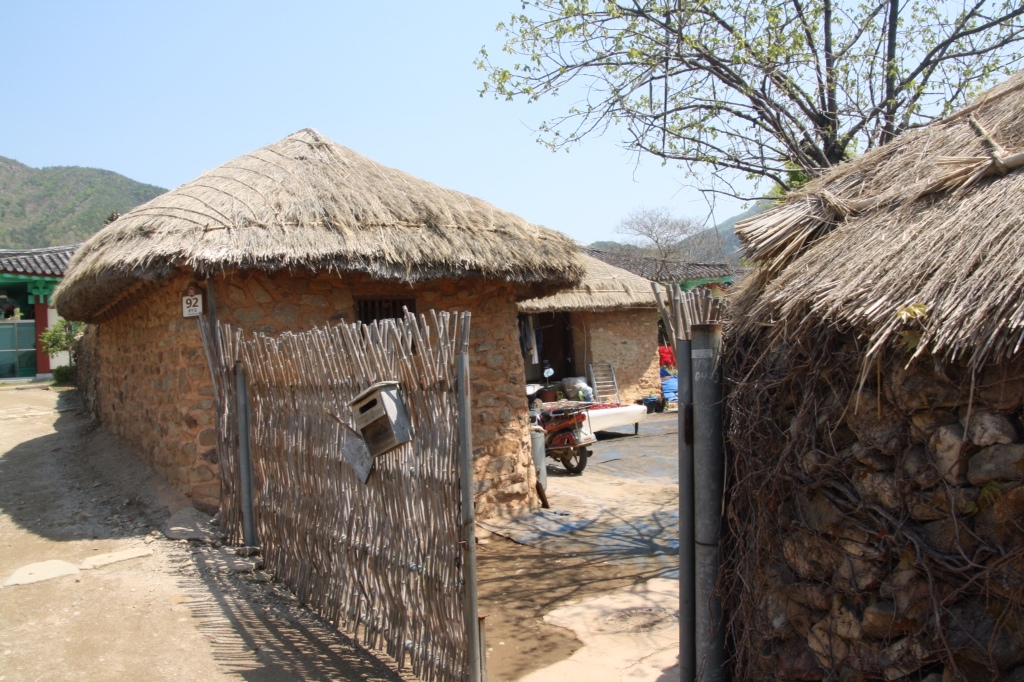 vi kørte videre til en traditionel landsby, hvor der stadig bor folk, som man boede i gamle dage. Prisen for et hus her er 1 millioner kroner. Den kommer på unesco’s liste over bevaringsværdige steder, så priserne kommer sikkert til at stige. Tagene er lavet af risstrå, der lægges et nye lag på hvert år.