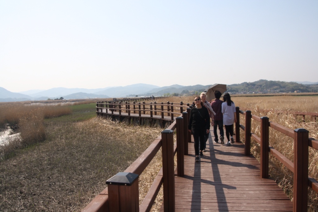 Efter frokost kørte vi til Suncheon marsk som er et natur reservat. Man kan se fugle herunder traner, krabber dyndspringer osv.