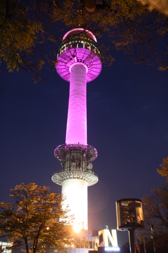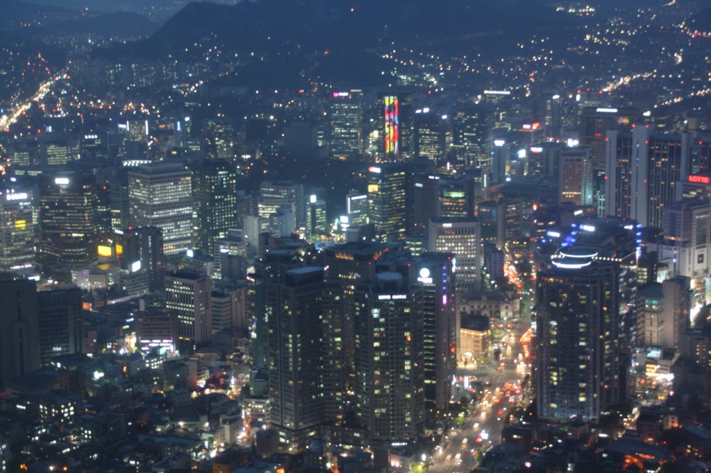 Ved aftenstid tog vi op til Seoul Tower for at se solnedgangen.
