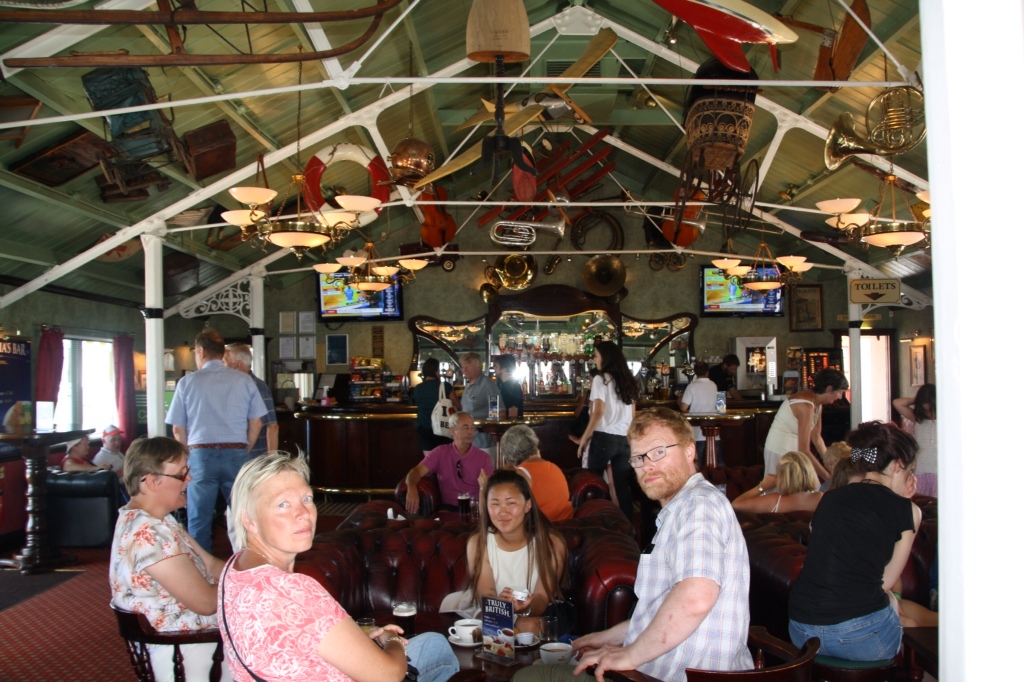 På pub. Læg mærke til sofaer og ting i loftet