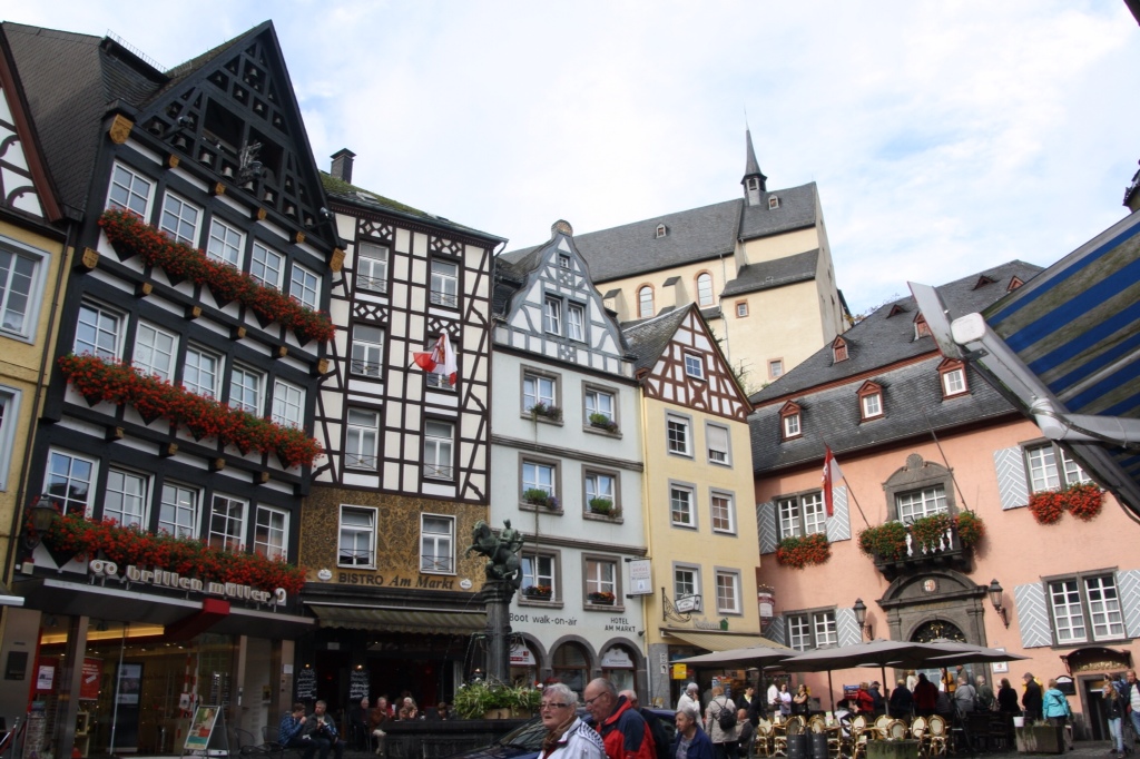 Vi har kørt en times tid langs Mosel til Cochem. Igen en smuk by, men hold da op hvor er der mange turister
