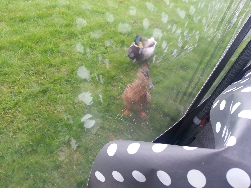 Forteltet er sat op og straks står ænderne og banker på. De går helt ind i teltet, hvis de kan komme til det. De to hører til her, men der kommer også mange andre, som bliver jaget væk, ved at de holder fat i deres fjer. Dem samler de så bag efter til rede. Godt man ikke er and.