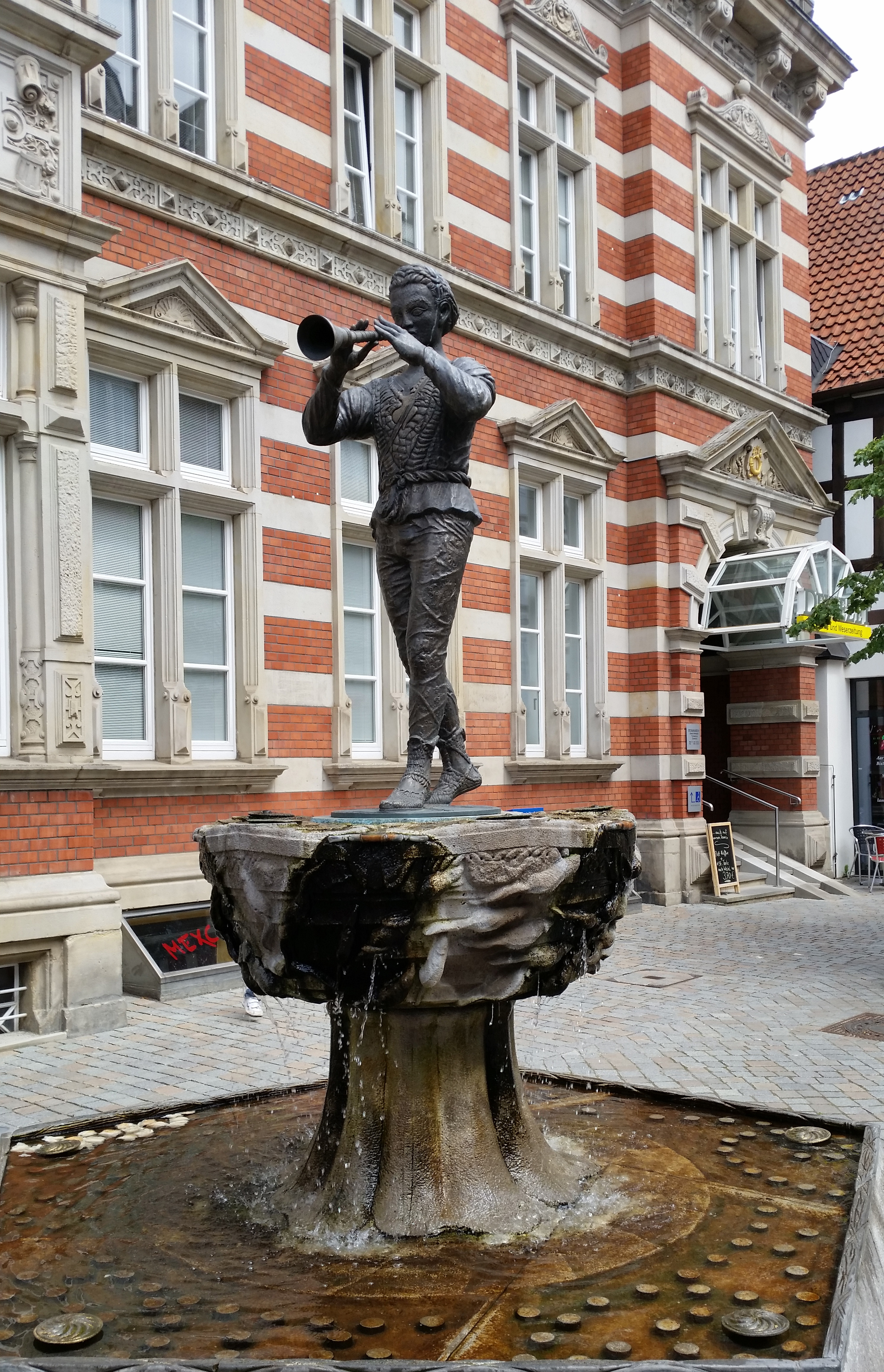 Her står rottefængeren fra Hameln. Det var en meget større by end vi havde forventet. Endnu en smuk by med dejlige kager.