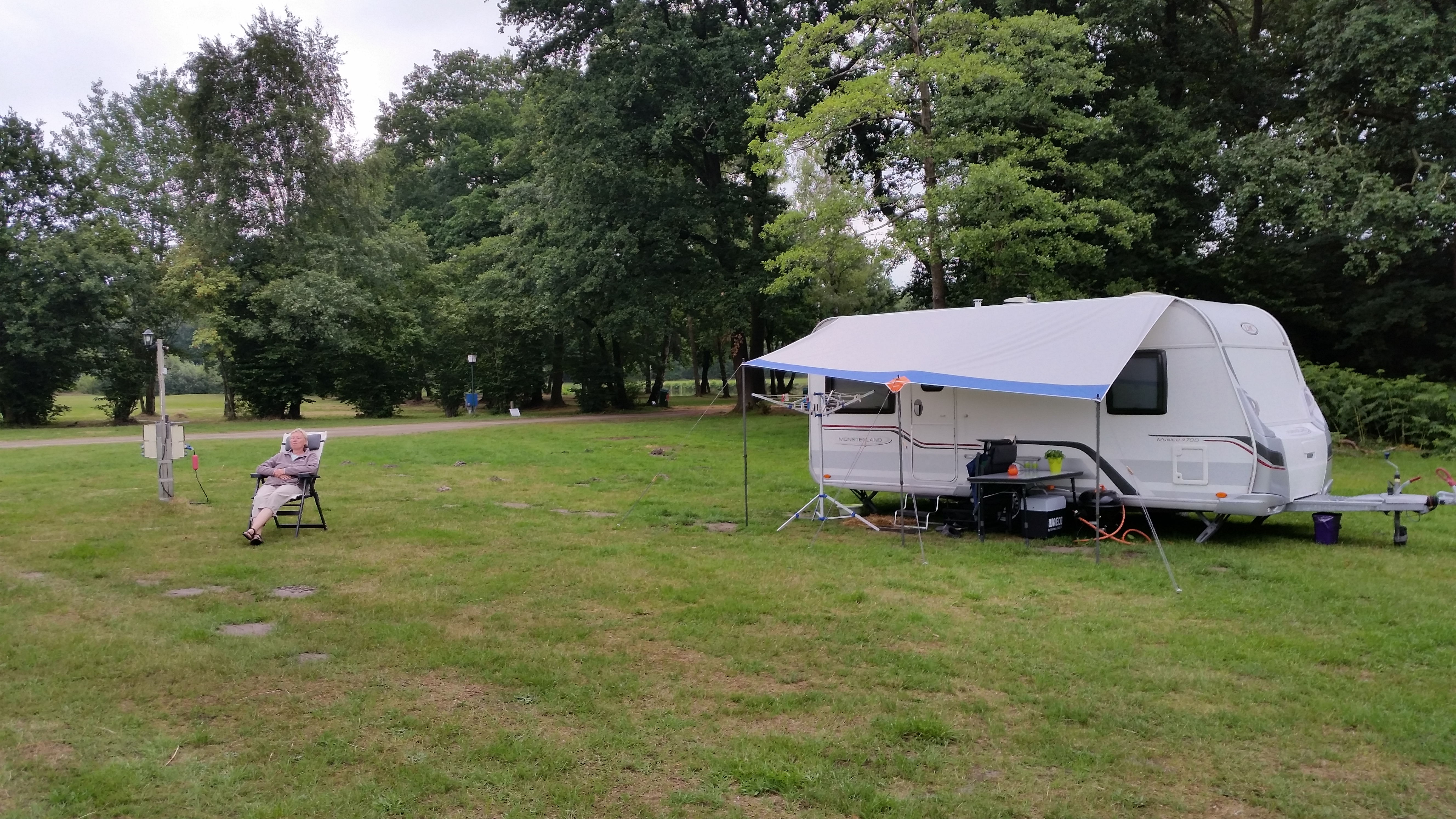Vi kommer ind på Campingplatz Parksee Lohne. Da der ikke er plads på den almindelige transitplads blev vi lagt om på et meget stort areal ved søen, som vi efter weekenden har helt for os selv.