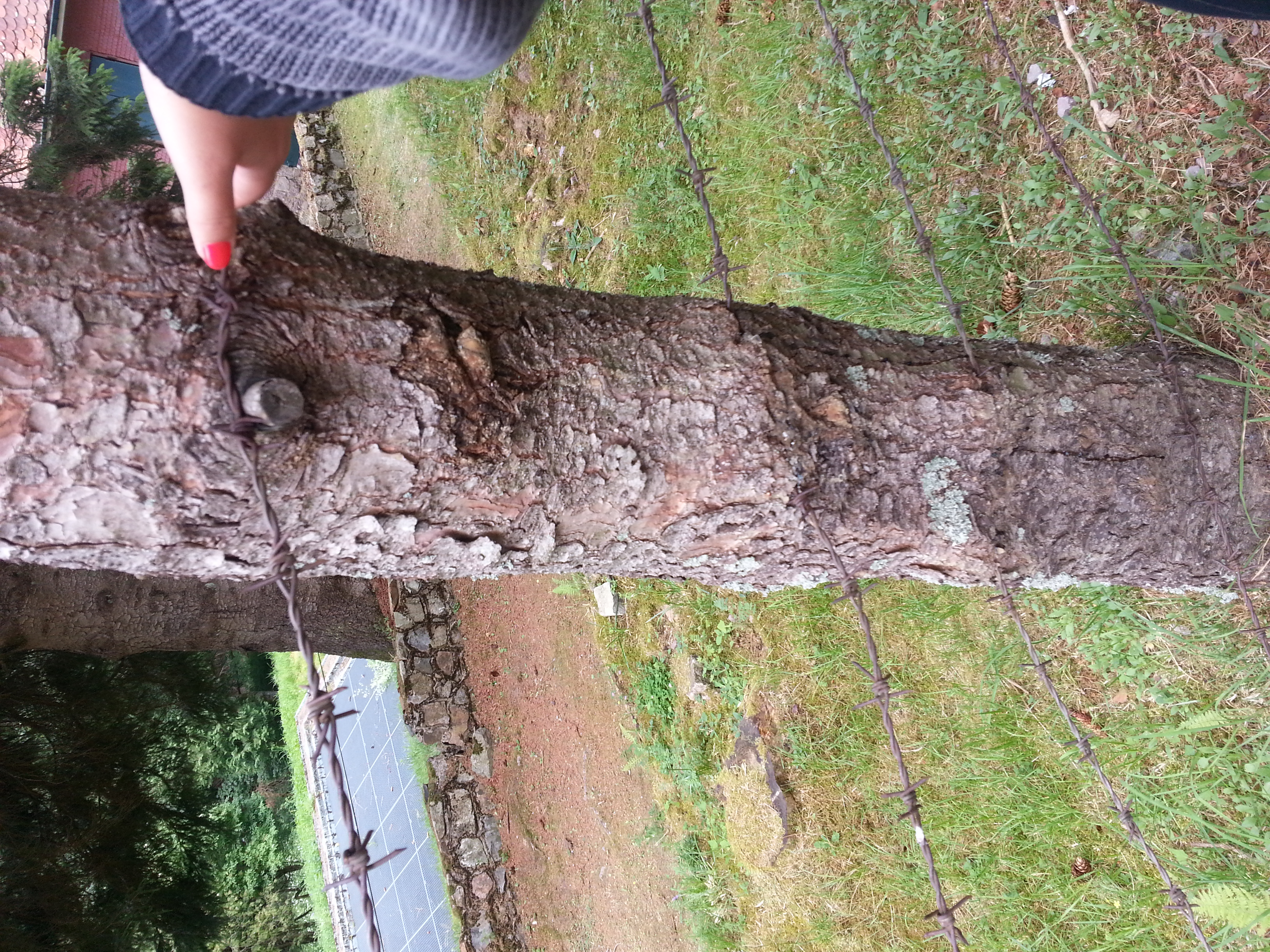 Der er pigtråd alle steder. Noget er vokset ind i træerne.