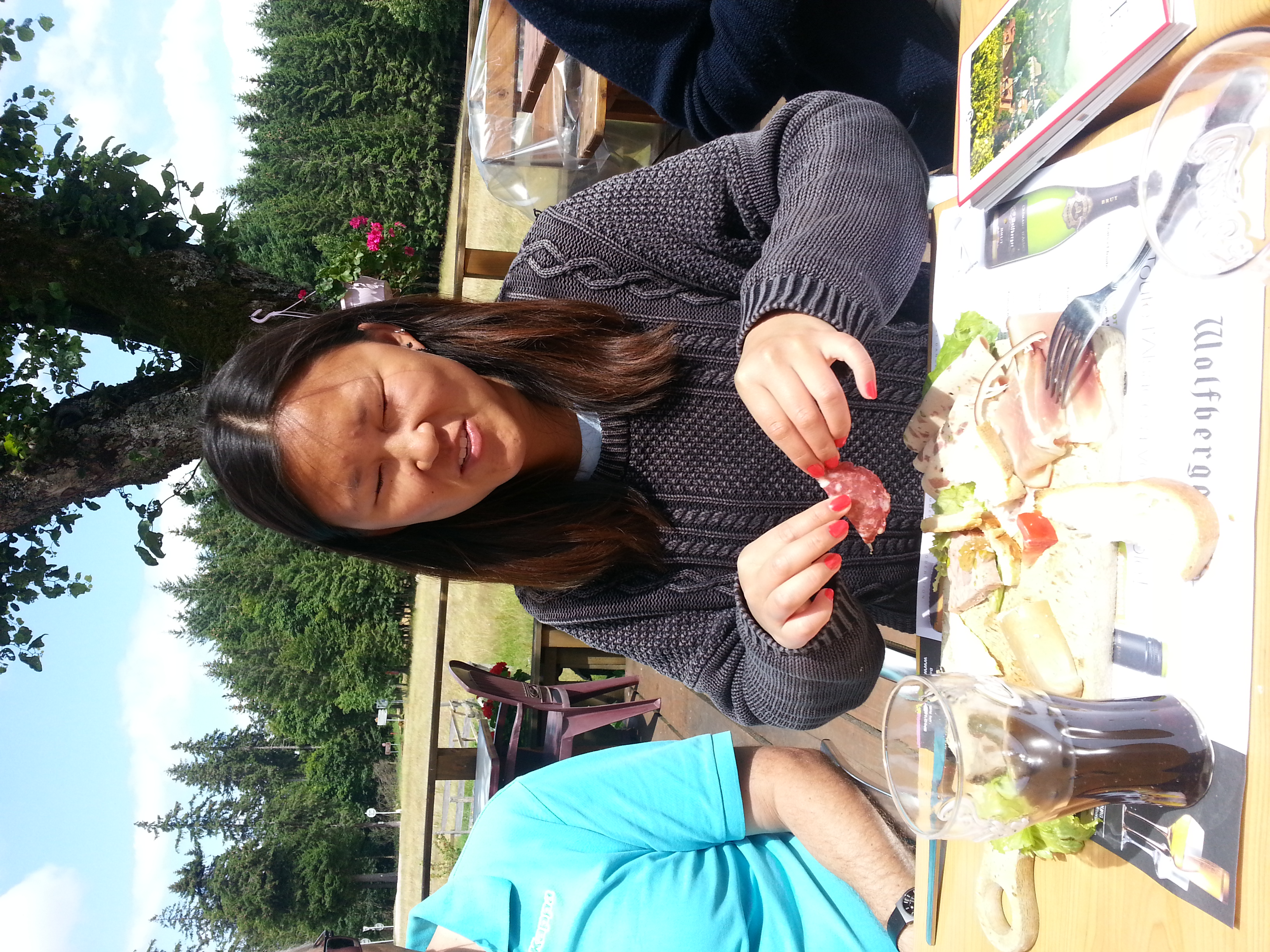 Efter den triste oplevelse spiste vi en dejlig platte på vej til abebjerget.