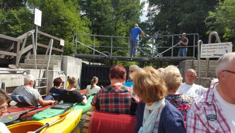 Vi var igennem tre sluser. Her betaler man har i sær lidt til sluse vagten.