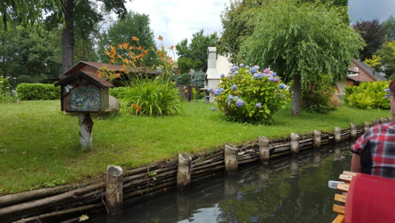 Mandag kørte vi til Lübbenau for at sejle med kahn både på kanalerne ud til Lehde, som er en by, det kun er muligt at komme til med en kahn (fladbundet pram som stages frem).