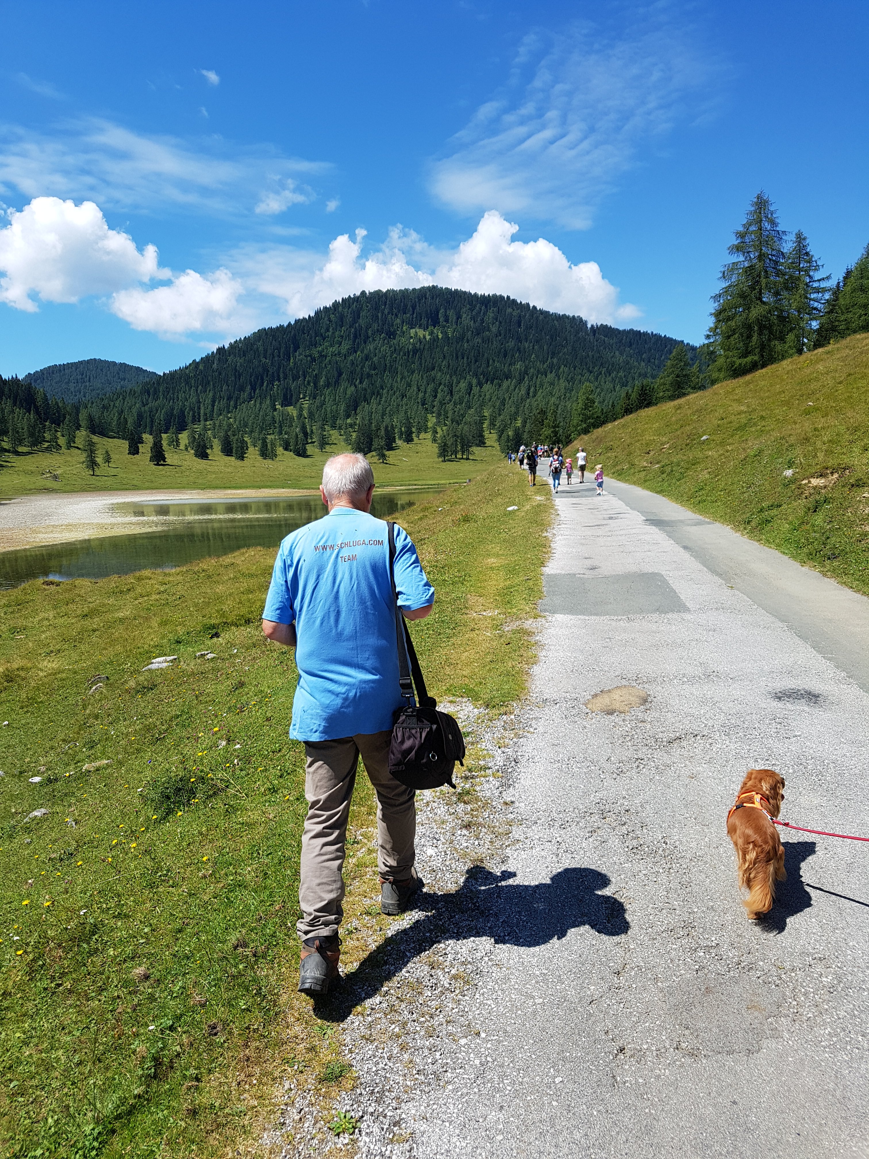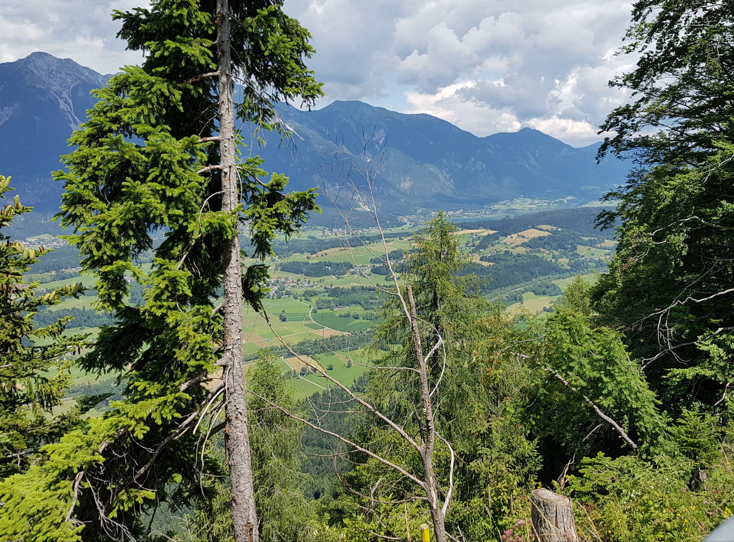 Havjvejs nede stoppede vi og tog et billede. Øverst til højre ligger Pressegger See og Campingpladsen.
