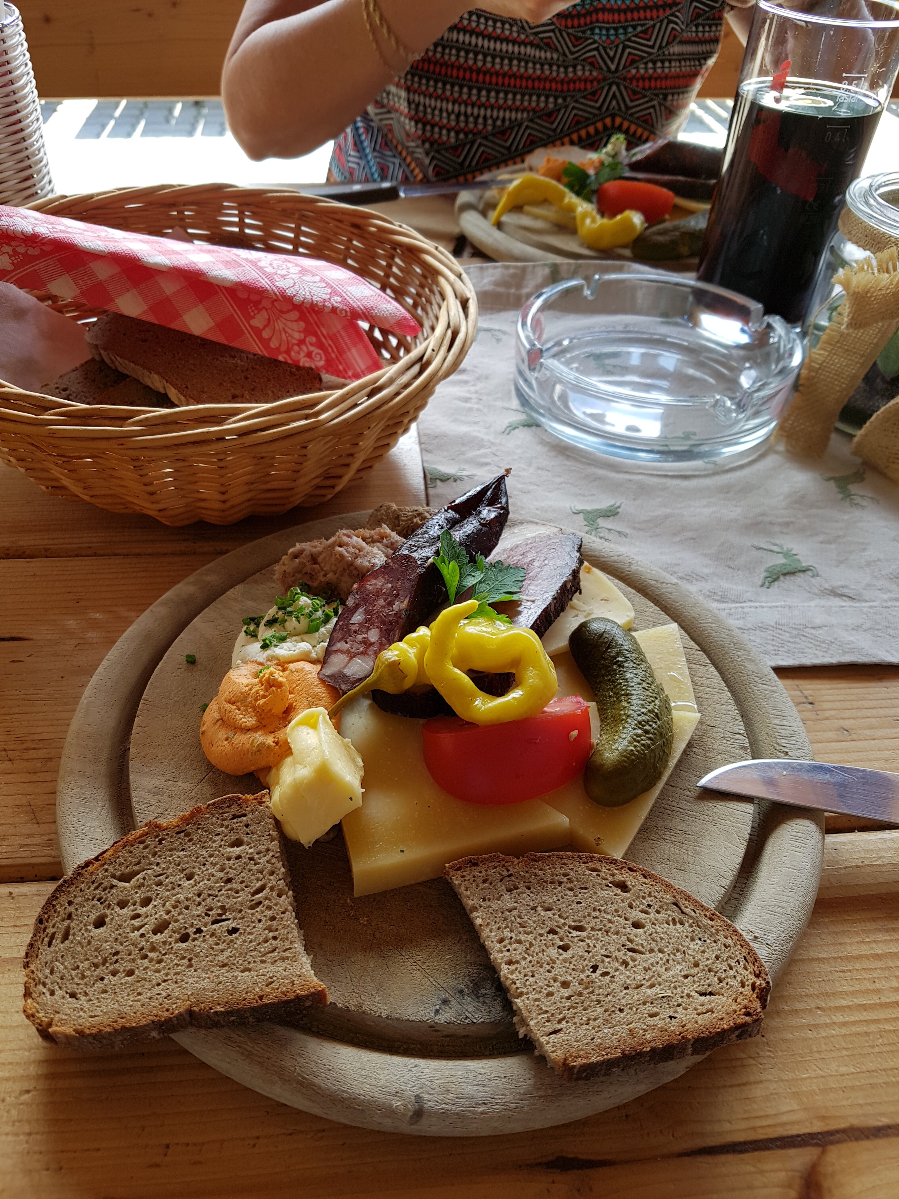 Vi spiste et bræt med oste, pølse og skinke på Osteriget. De fremstiller selv osten.