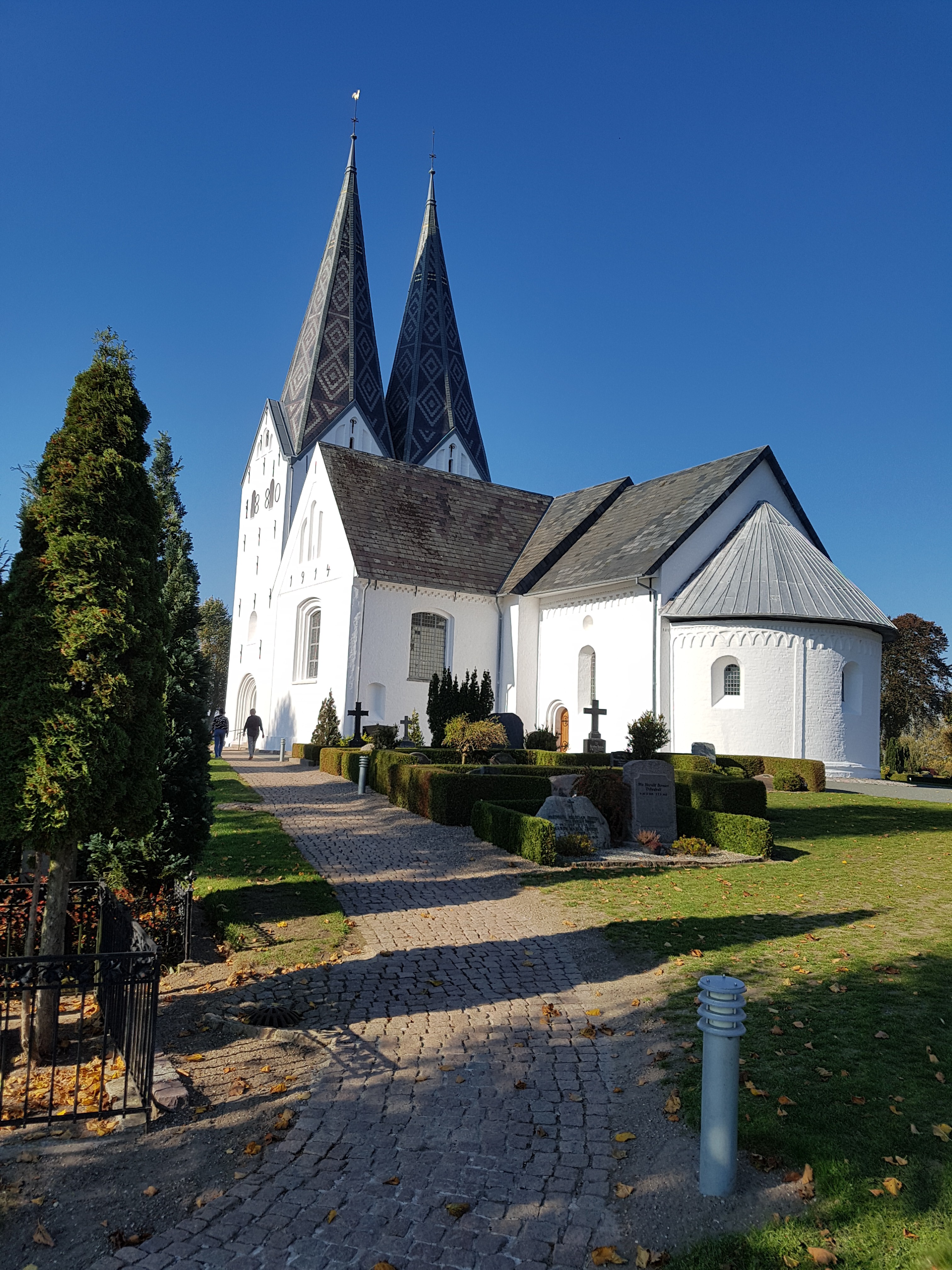 Broager kirke med sit dobbelt tårn.