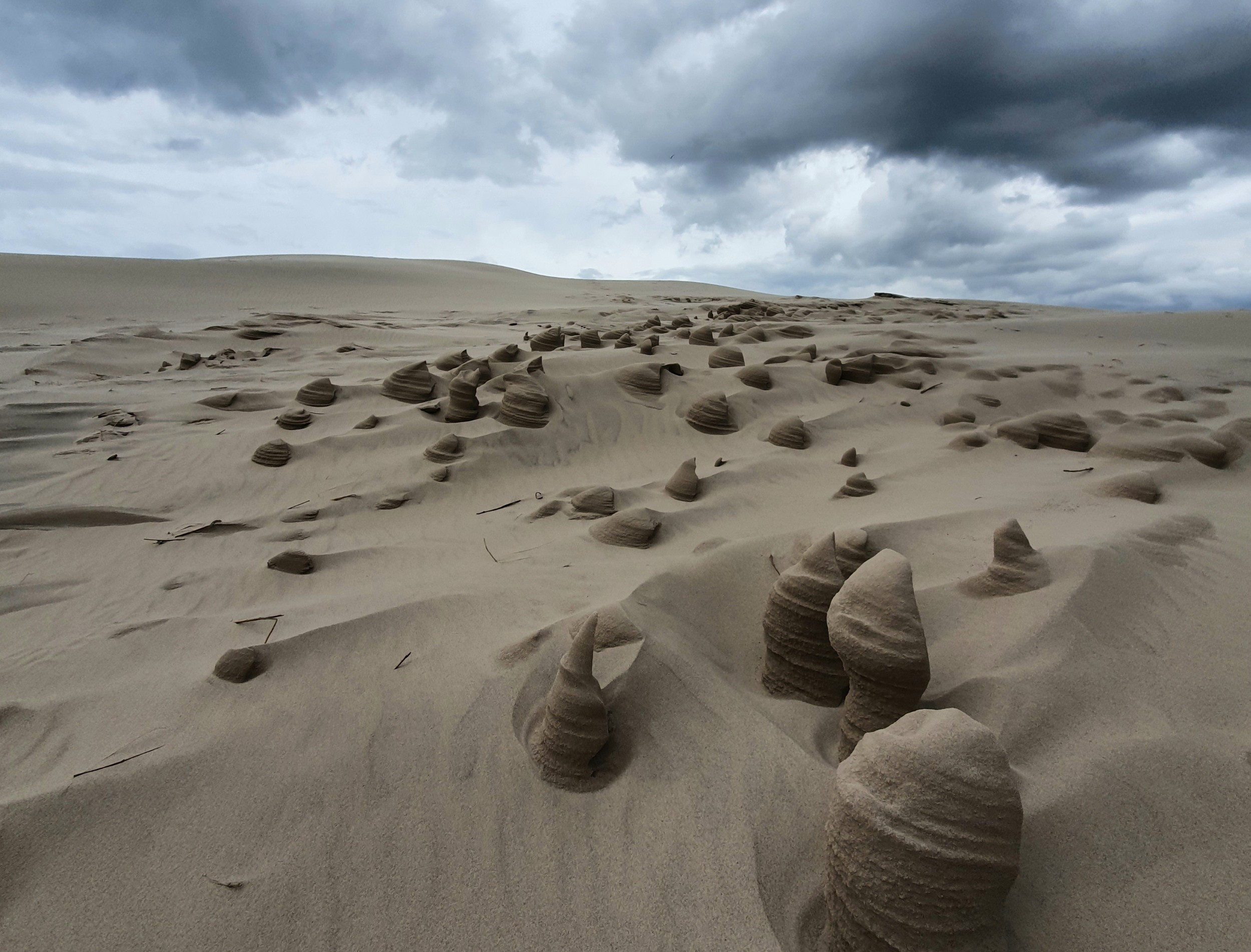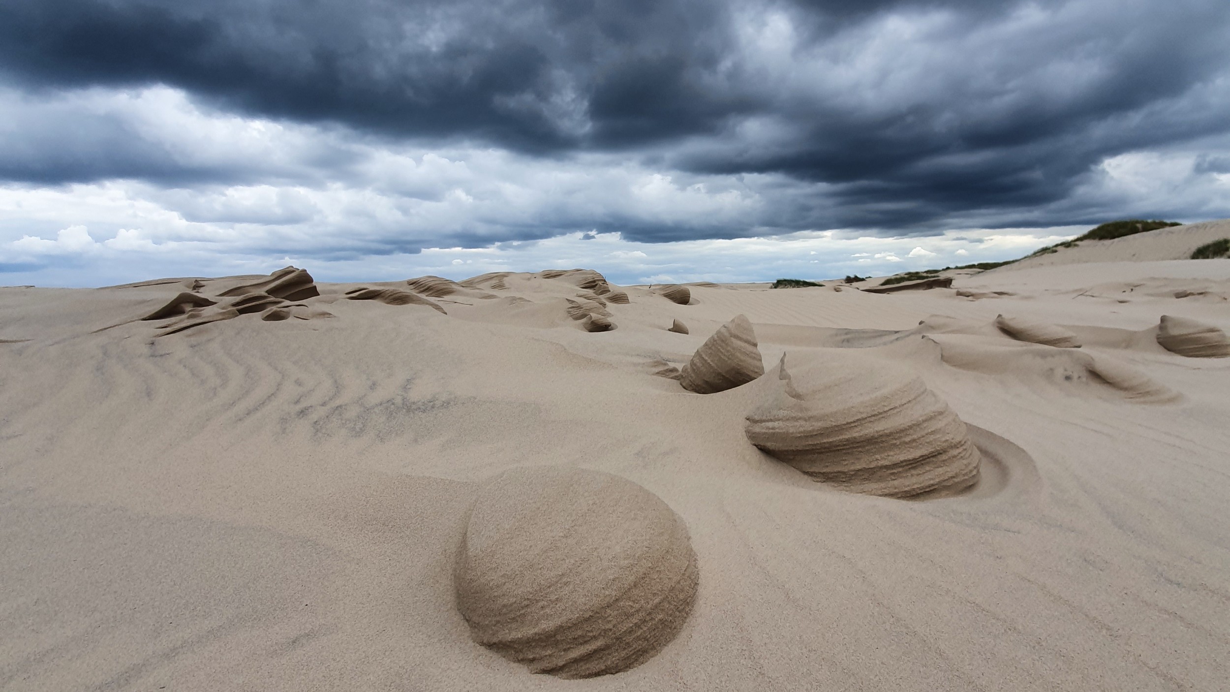 Vi gik en dejlig tur på Råbjergmile. Der dækker et område på 1 km2 og indeholde 3,y millioner km3 sand. Milen flytter sig med 15 m om året mod øst.