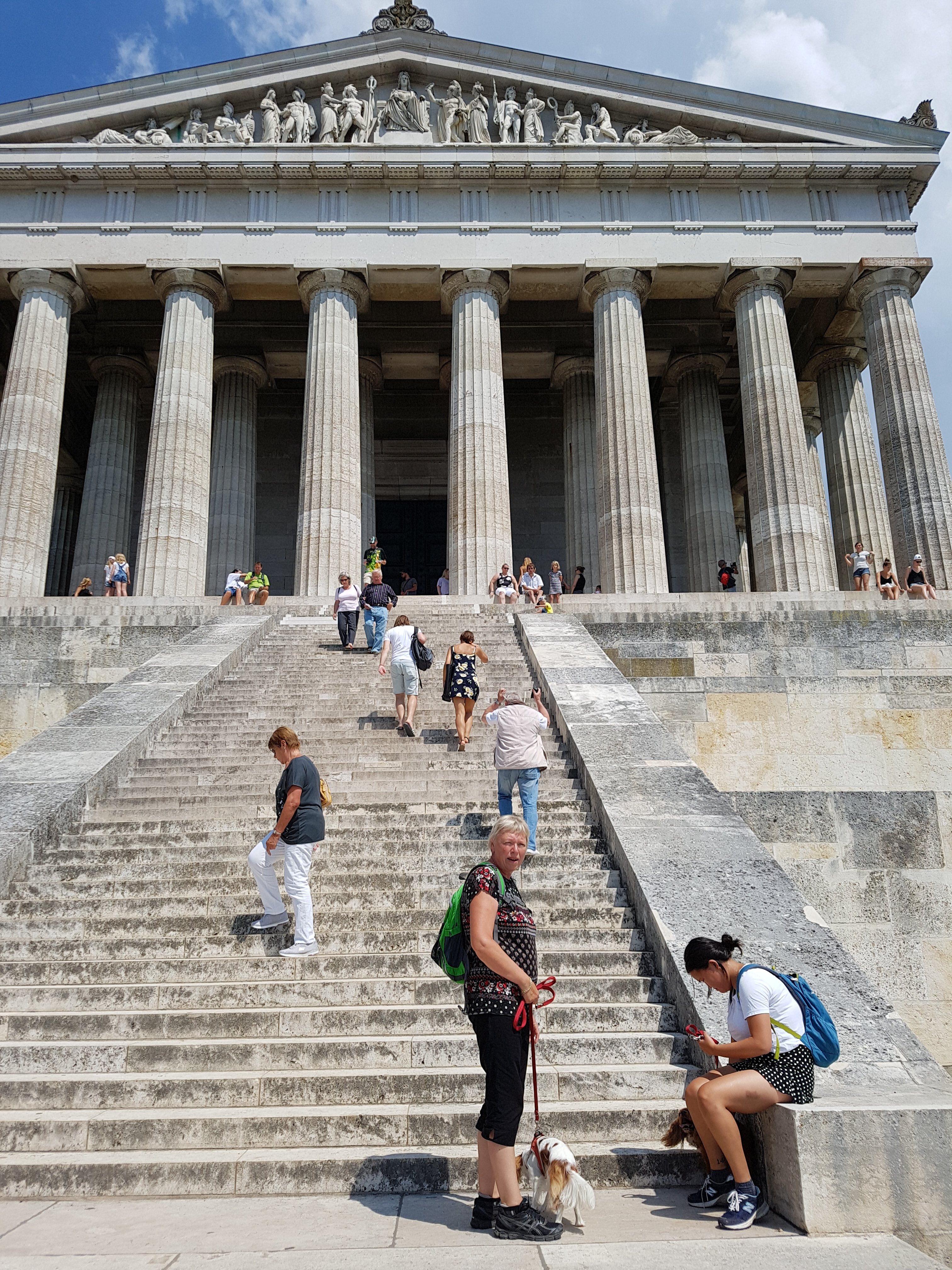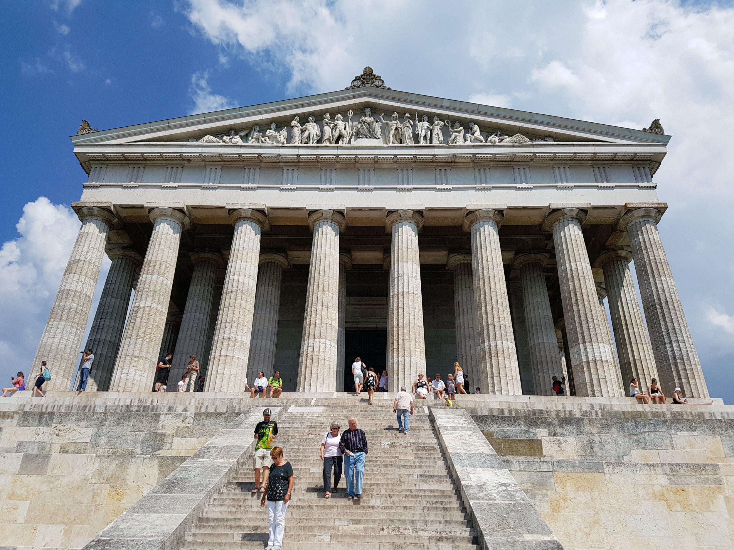 Kong Ludwig 1. af Bayern lod templet opføre som en kopi af det græske tempel Parthenon i Athen, men hentede navnet fra den nordiske mytologi.