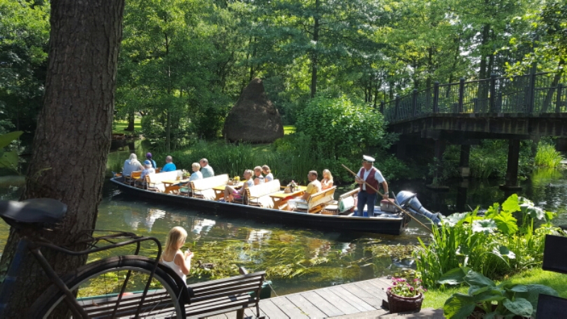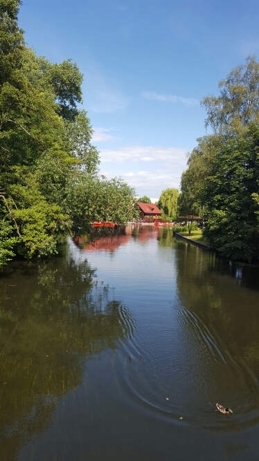 Mandag kørte vi til Lübbenau for at sejle med kahn både på kanalerne ud til Lehde, som er en by, det kun er muligt at komme til med en kahn (fladbundet pram som stages frem).