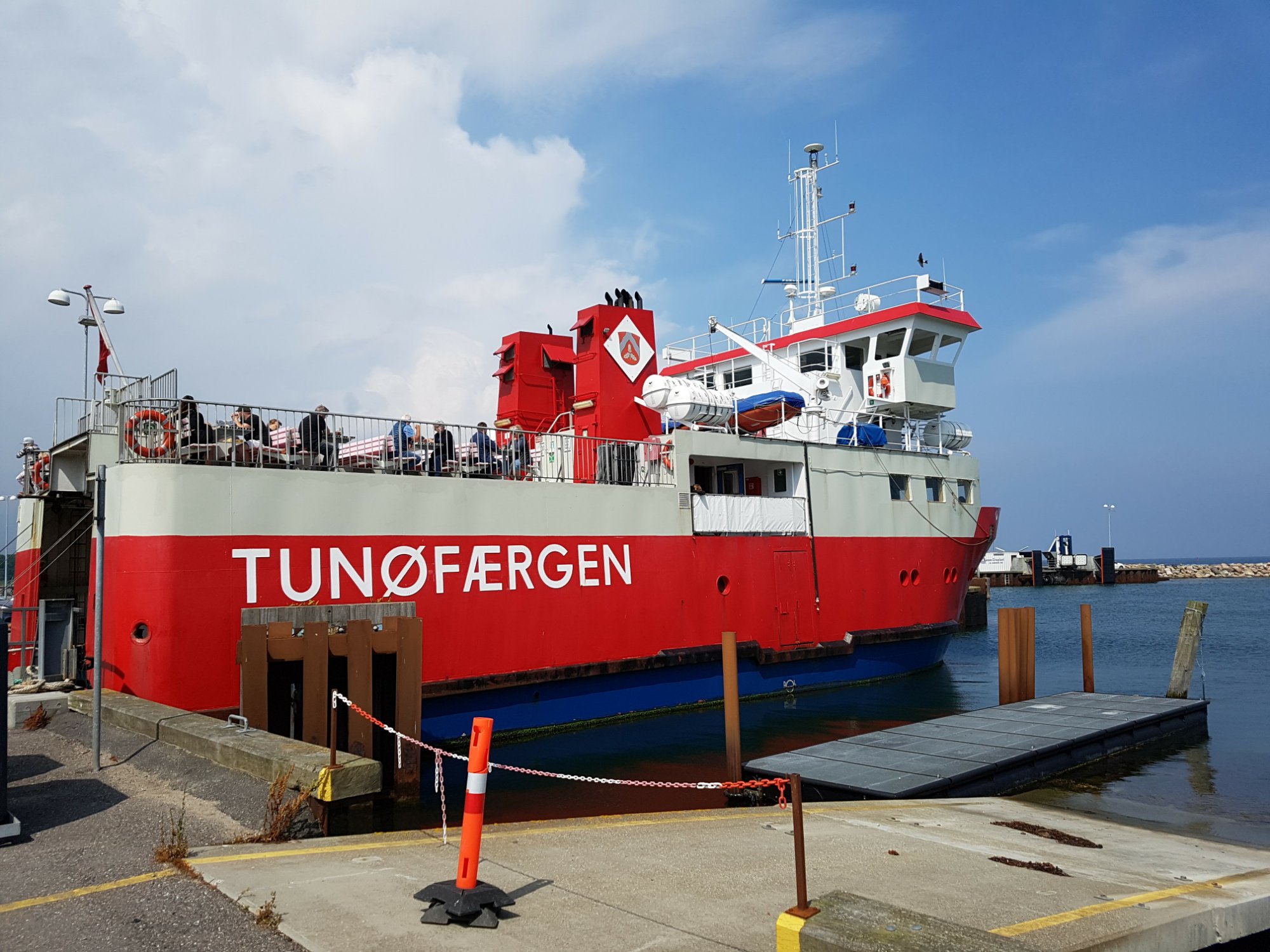 Her har vi hejst flaget så båden ved at den skal hente os.