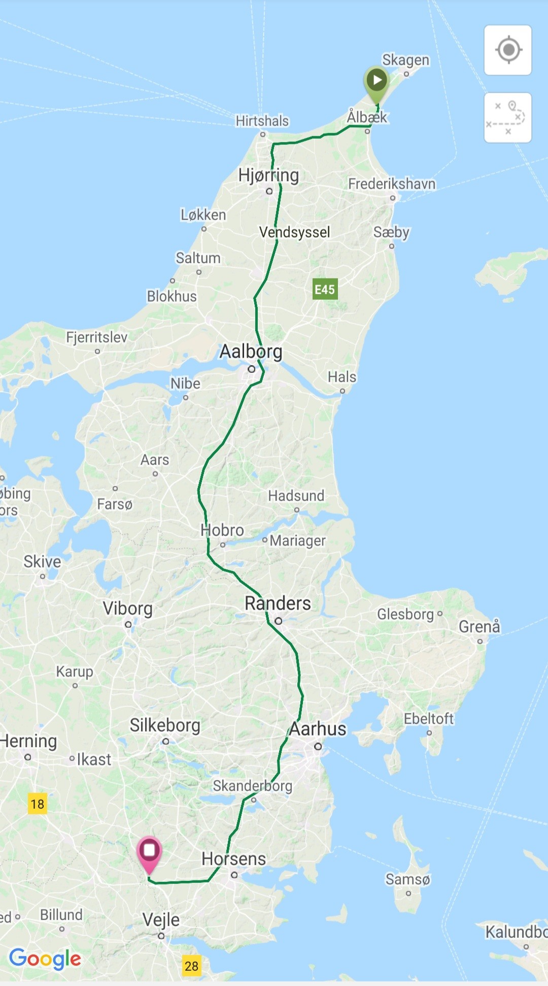Vi kørte fra Råbjergmile camping kl. 10 og var fremme 1345.