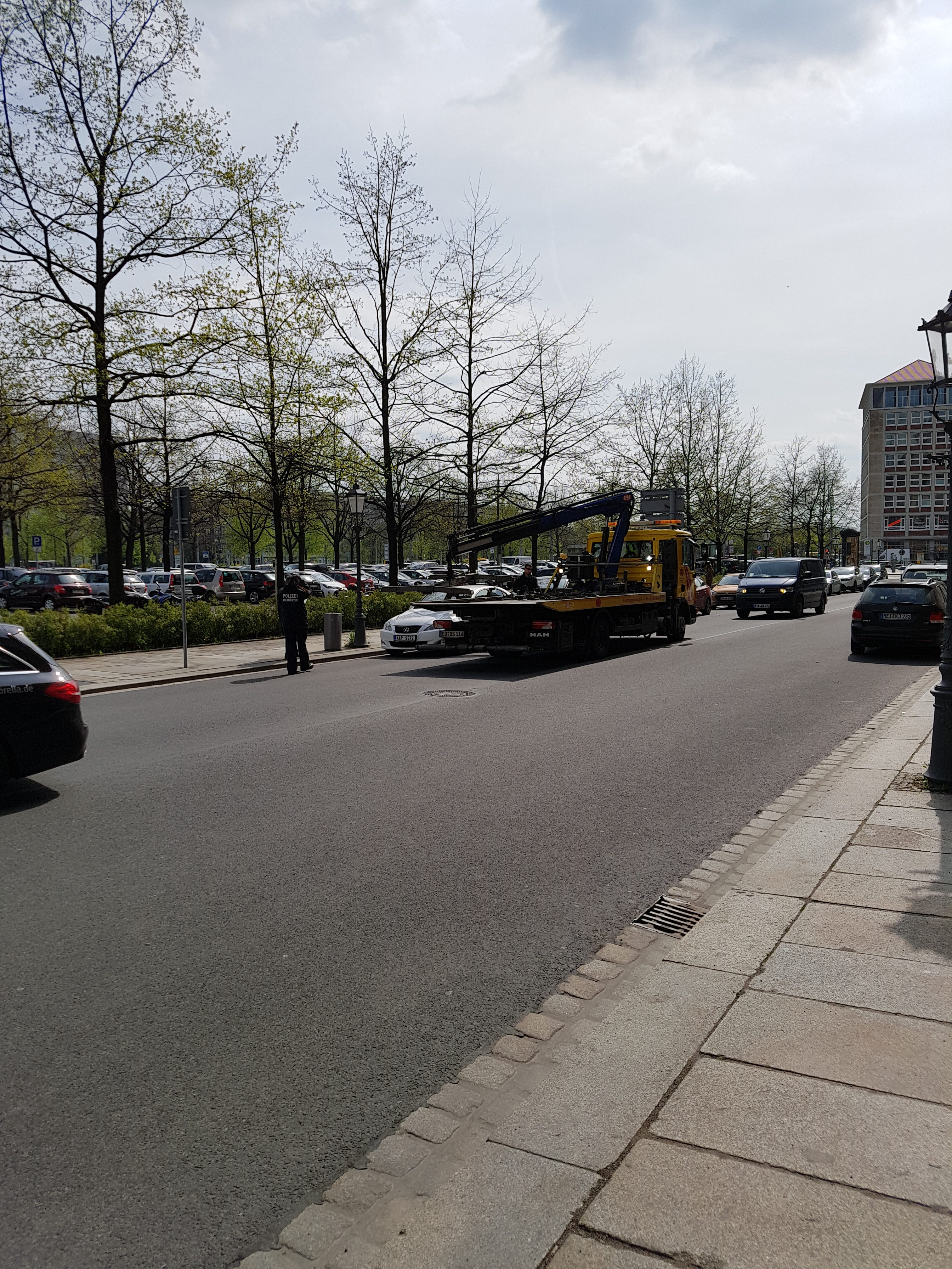 Man skal ikke parkerer ulovligt på en handicap plads lige over for politi stationen. Så bliver bilen fjernet.